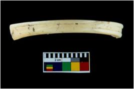| Description / विवरण | A broken fragment of a decorated shell bangle. It is creamish in colour with rectangular cross section. |