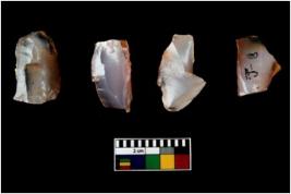 | Description / विवरण | Four worked utilised cores from which blades removed from almost all the sides. |
