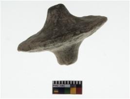 | Description / विवरण | A partially broken specimen of a teracotta toy-cart wheel with a projected hub with a plain surface . The outer circumferance of the wheel is used to be sharp and it is having a few grooves among which only two lines are now visible. |
