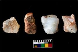 | Description / विवरण | Four utilised worked cores with sharp edges. Some of them are tapering at one end. Removal of flakes from few sides. |