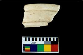 | Description / विवरण | A broken fragment of a decorated shell bangle. It is creamish in colour with rectangular cross section. |