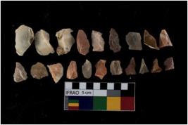 | Description / विवरण | There are n-20 of intact flake cores made up of Chert. Some of them have bulge of percussion, some are flat flakes and few are retouched. |