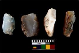 | Description / विवरण | Four worked utilised cores from which blades removed from almost all the sides. |
