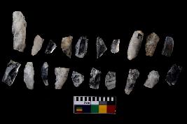 | Description / विवरण | There are n-20 of microliths, all of them are quartz. Some of them are partially broken. They show variation in colour, size and shape. Some of them are blunted back blades, points, triangles, trapezes, crescent and truncated blades. |
