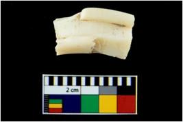 | Description / विवरण | A broken fragment of a decorated shell bangle. It is creamish in colour with rectangular cross section. |