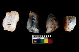 | Description / विवरण | Four worked utilised cores from which blades removed from almost all the sides. |