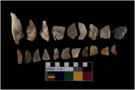 | Description / विवरण | There are n-20 of intact flake cores. Out of them 18 are made up of Chert and 2 are made up of Chalcedony. Some of them have bulge of percussion, some are flat flakes and few are retouched. |