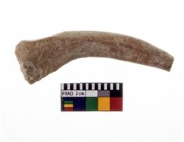 | Description / विवरण | A specimen of a stylized straight horn of a bull figurine made up of fine clay, well fired. Tip of the horn is slightly curved. |