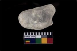 | Description / विवरण | A specimen of a quartz flake, shows five flake scars. |