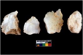 | Description / विवरण | Four utilised worked cores with sharp edges. Some of them are tapering at one end. Removal of flakes from few sides. |