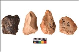 | Description / विवरण | Four worked utilised flakes. Most of them are uneven with sharp edges. |