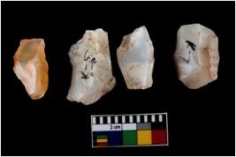 | Description / विवरण | Four worked utilised cores from which blades removed from almost all the sides. |