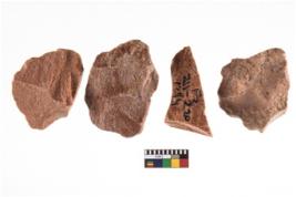| Description / विवरण | A rectangular flake with wavy thick distal end and broken functional top. |