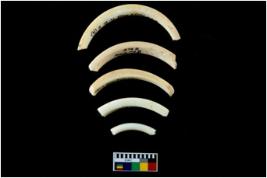 | Description / विवरण | Fragments of an undecorated shell bangle. It is creamish in colour with rectangular cross section. |