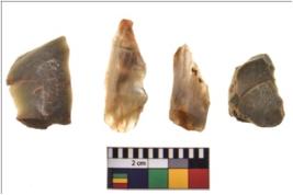 | Description / विवरण | Four worked utilised flakes. Most of them are uneven with sharp edges. |