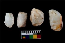 | Description / विवरण | Four worked utilised cores from which blades removed from almost all the sides. |