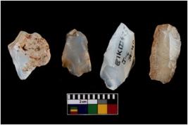 | Description / विवरण | Four worked utilised cores from which blades removed from almost all the sides. |