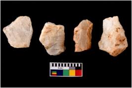 | Description / विवरण | Four worked utilised flakes. Most of them are uneven with sharp edges. |