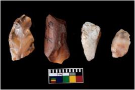 | Description / विवरण | Four worked utilised cores from which blades removed from almost all the sides. |