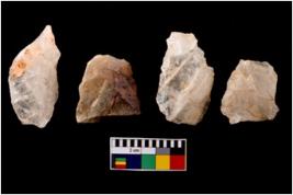 | Description / विवरण | Four worked utilised flakes. Most of them are uneven with sharp edges. |