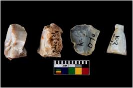 | Description / विवरण | Four worked utilised cores from which blades removed from almost all the sides. |