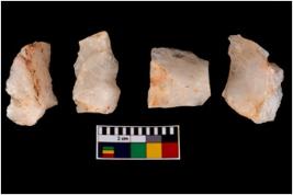 | Description / विवरण | Four worked utilised flakes. Most of them are uneven with sharp edges. |