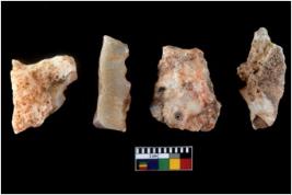 | Description / विवरण | Four utilised worked cores with sharp edges. Some of them are tapering at one end. Removal of flakes from few sides. |