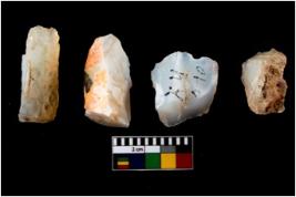 | Description / विवरण | Four worked utilised cores from which blades removed from almost all the sides. |
