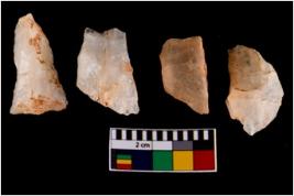 | Description / विवरण | Four worked utilised flakes. Most of them are uneven with sharp edges. |