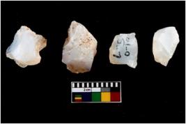 | Description / विवरण | Four worked utilized cores from which blades removed from almost all the sides. |