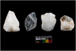 | Description / विवरण | Specimen of flake tools with prominent flaking marks. It made up of a short flakes with sides trimmed. |
