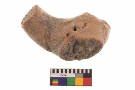 | Description / विवरण | Fragment of an handmade bull figurine made with fine clay. It is red ware, well fired and smooth in texture. |