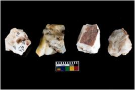 | Description / विवरण | Four utilised worked cores with sharp edges. Some of them are tapering at one end. Removal of flakes from few sides. |