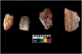 | Description / विवरण | Four worked utilized cores from which blades removed from almost all the sides. |