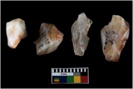 | Description / विवरण | Four worked utilized cores from which blades removed from almost all the sides. |