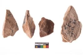 | Description / विवरण | A rectangular flake with wavy thick distal end and broken functional top. |