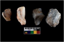 | Description / विवरण | Four worked utilized cores from which blades removed from almost all the sides. |