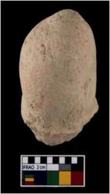 | Description / विवरण | A partially broken specimen of an oval shape handmoulded crucible with smooth top and thick wall roughly 11.02 mm thick. It is having a vetrified surface along with tubular chamber at the centre. |