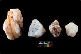 | Description / विवरण | Four utilised worked cores with sharp edges. Some of them are tapering at one end. Removal of flakes from few sides. |