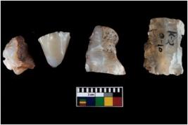 | Description / विवरण | Four worked utilized cores from which blades removed from almost all the sides. |