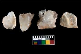 | Description / विवरण | Four worked utilized cores from which blades removed from almost all the sides. |