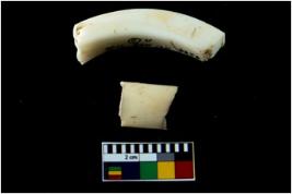 | Description / विवरण | A broken fragment of an undecorated shell bangle. It is creamish in colour with rectangular cross section. |