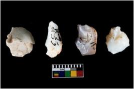 | Description / विवरण | Four utilised worked cores with sharp edges. Some of them are tapering at one end. Removal of flakes from few sides. |