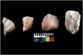 | Description / विवरण | Four worked utilized cores from which blades removed from almost all the sides. |
