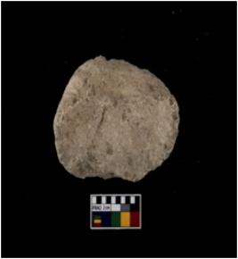 | Description / विवरण | A partially broken specimen of stone disc with rounded and smooth edge and flat surface. It is made of quartz. |