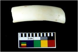 | Description / विवरण | A broken fragment of an undecorated shell bangle. It is creamish in colour with rectangular cross section. |