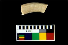 | Description / विवरण | A broken fragment of an undecorated shell bangle. It is creamish in colour with rectangular cross section. |
