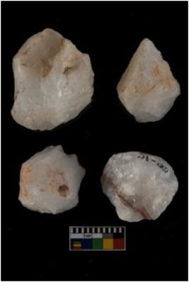 | Description / विवरण | There are n-4 of cores. All of them are intact fully fluted cores without any trace of crested ridge flakes made up of Quartz. |