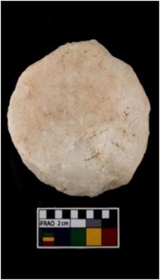 | Description / विवरण | A complete specimen of flat stone disc with smooth surface on both the sides and smooth edges. It is made of quartz. |