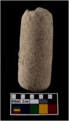 | Description / विवरण | A partially broken specimen of a terracotta cylindrical object with smooth surface, medium size with elongated body, slightly tapering sides and almost flat ends. It is devoid of any kind of wash. It is fine in fabric and well fired. It is broken at apex. Probably a stopper. |